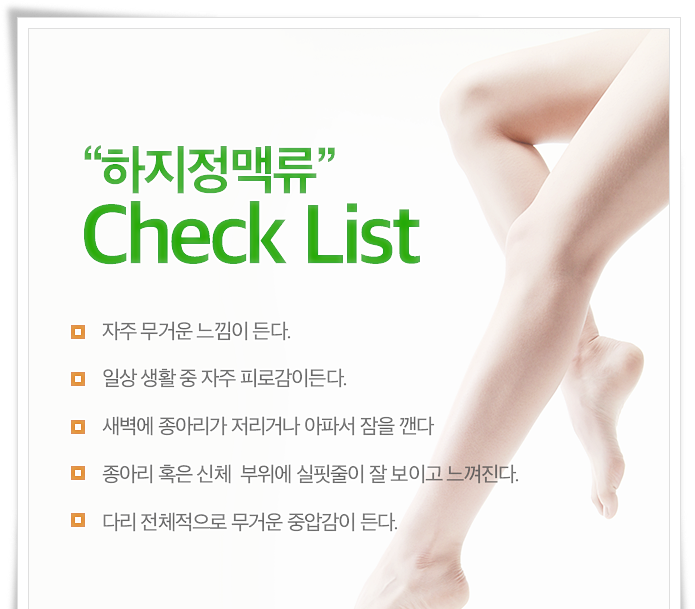 하지정맥류는 다리의 정맥이 커지고 뒤틀리고 불록해지는 흔한 질병이다. 그것들은 혈액이 심장으로 되돌아가는 것을 돕는 정맥 내의판막이 약해지거나 손상되어 정맥에 피가 고이게 될 때 발생한다. 하지정맥류의 증상은 사람마다 다를 수 있으며 하지정맥류를 가진 모든 사람들이 모든 증상을 경험하는 것은 아니다. 그러나 가장 일반적인 증상 중 일부는 다음과 같다. 눈에 보이는 불룩한 정맥:하지정맥류의 가장 뚜렷한 증상은 다리에 불룩하고 뒤틀리며 때로는 파랗거나 자주색의 정맥이 나타나는 것이다. 이정맥들은 아래에서 올라가거나 줄처럼 보일 수 있다.